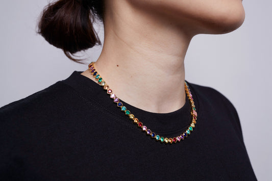 Tennis Necklace with lab-grown Rainbow Gemstones